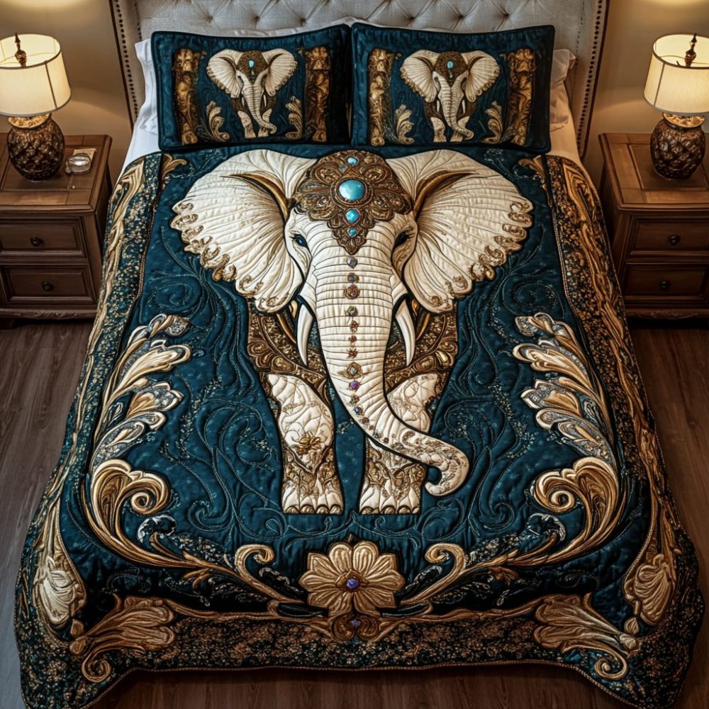 Majestic Elephant 3-Piece Quilted Bedding Set