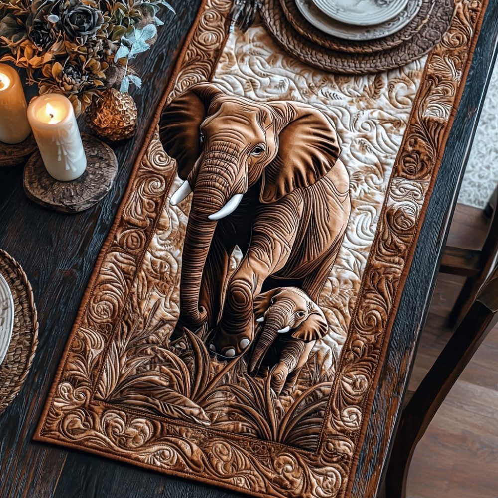 Majestic Elephant Quilted Table Runner