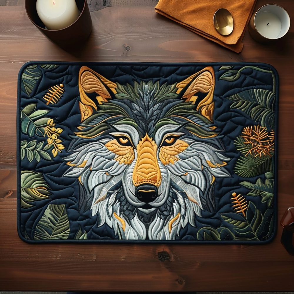 Make a statement with the Majestic Wolf quilted placemat, showcasing a powerful wolf illustration and finely stitched quilting. The padded surface protects tabletops and adds tactile interest, while the reversible pattern lets you switch up your decor easily. Constructed from durable, colorfast fabric that stands up to machine washing. Ideal for wildlife lovers, rustic cabins, or contemporary homes seeking a nature-inspired focal point. Order now to add dramatic style to your table.