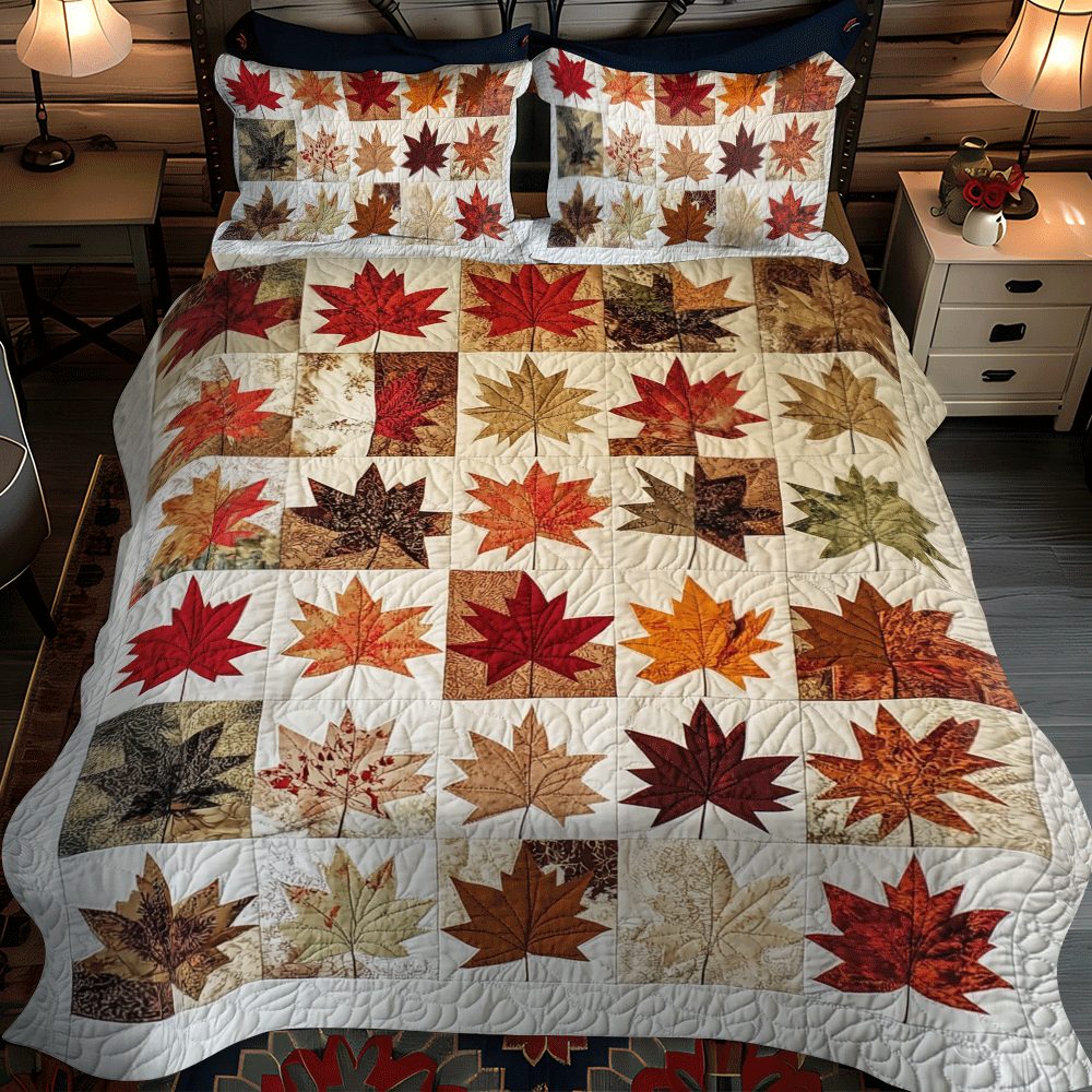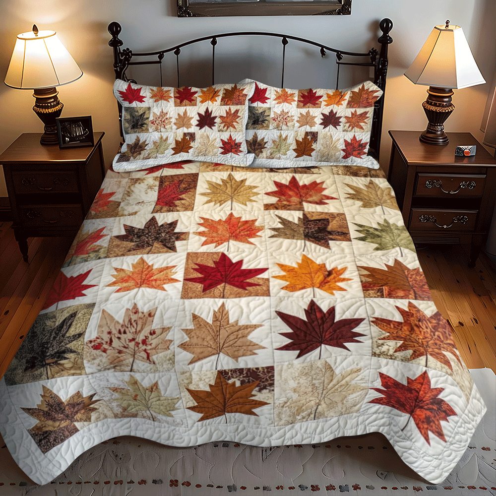 Maple Leaves Fall 3-Piece Quilted Bedding Set