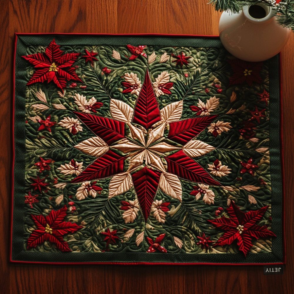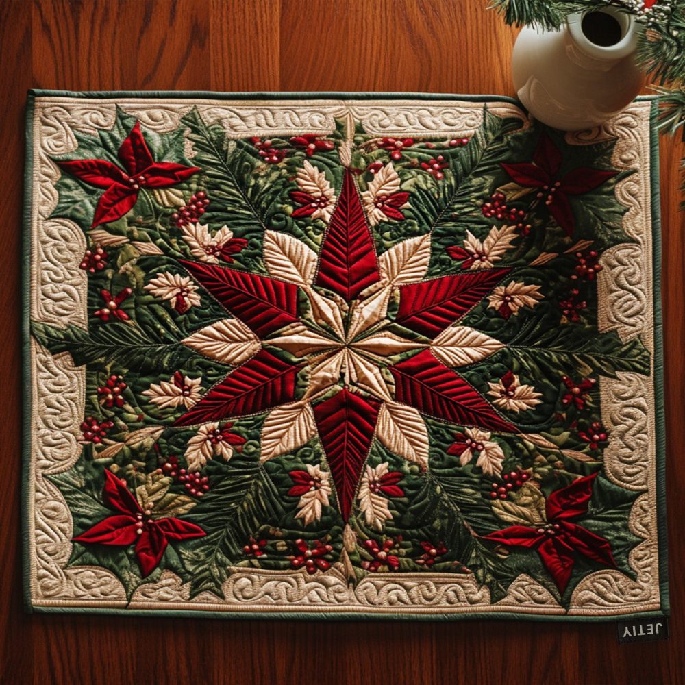 holiday placemat, merry blossoms, quilted floral mat, festive table decor, cotton placemat, machine washable, heat resistant, seasonal tableware