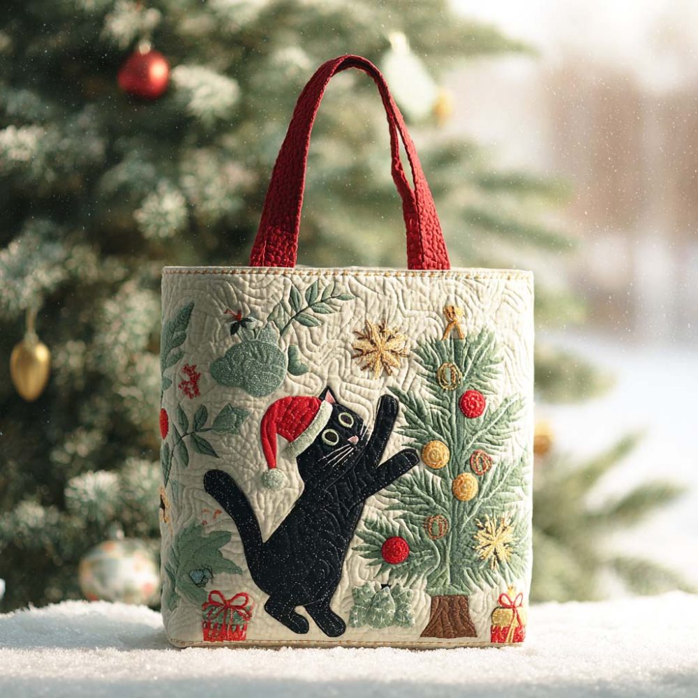 Merry Cat Quilted Tote Bag