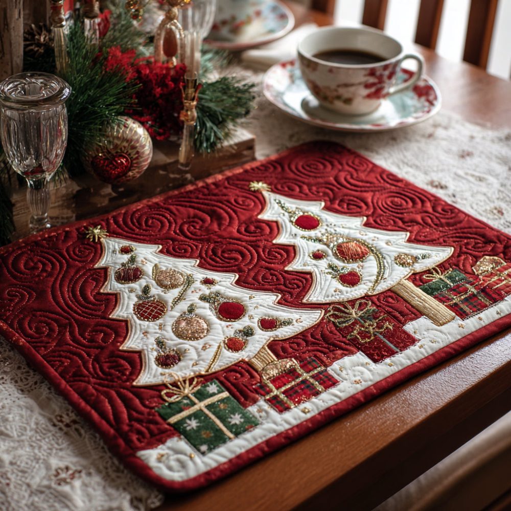 pine tree placemat,Christmas placemat,holiday table mat,quilted holiday decor,farmhouse Christmas placemat,machine washable table mat,evergreen table decor