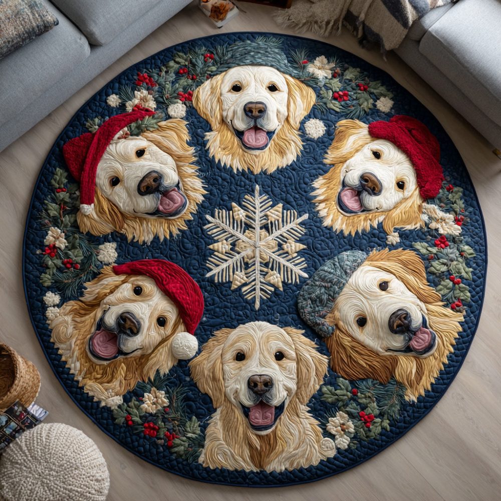 Merry Retriever Quilted Round Mat