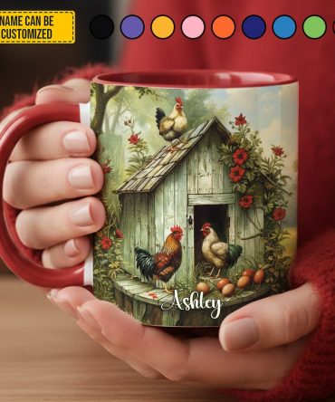 - High quality ceramic mug with two-tone rim, interior, & handle