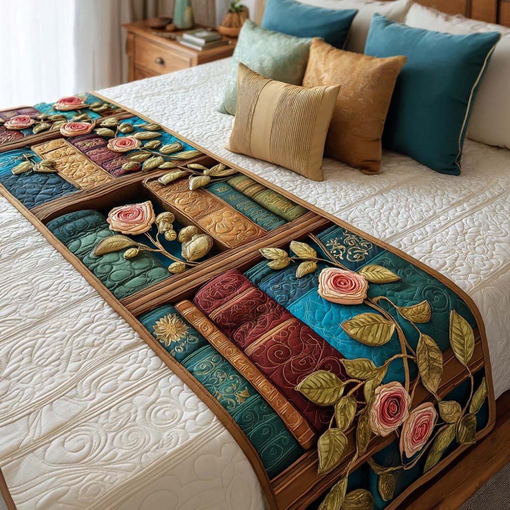 Midnight Chapters Quilted Bed Runner — Elegant Literary-Inspired Dark Panel Decorative Throw, Quilted Accent For Modern Bedrooms & Reading Nooks, Soft & Easy-Care