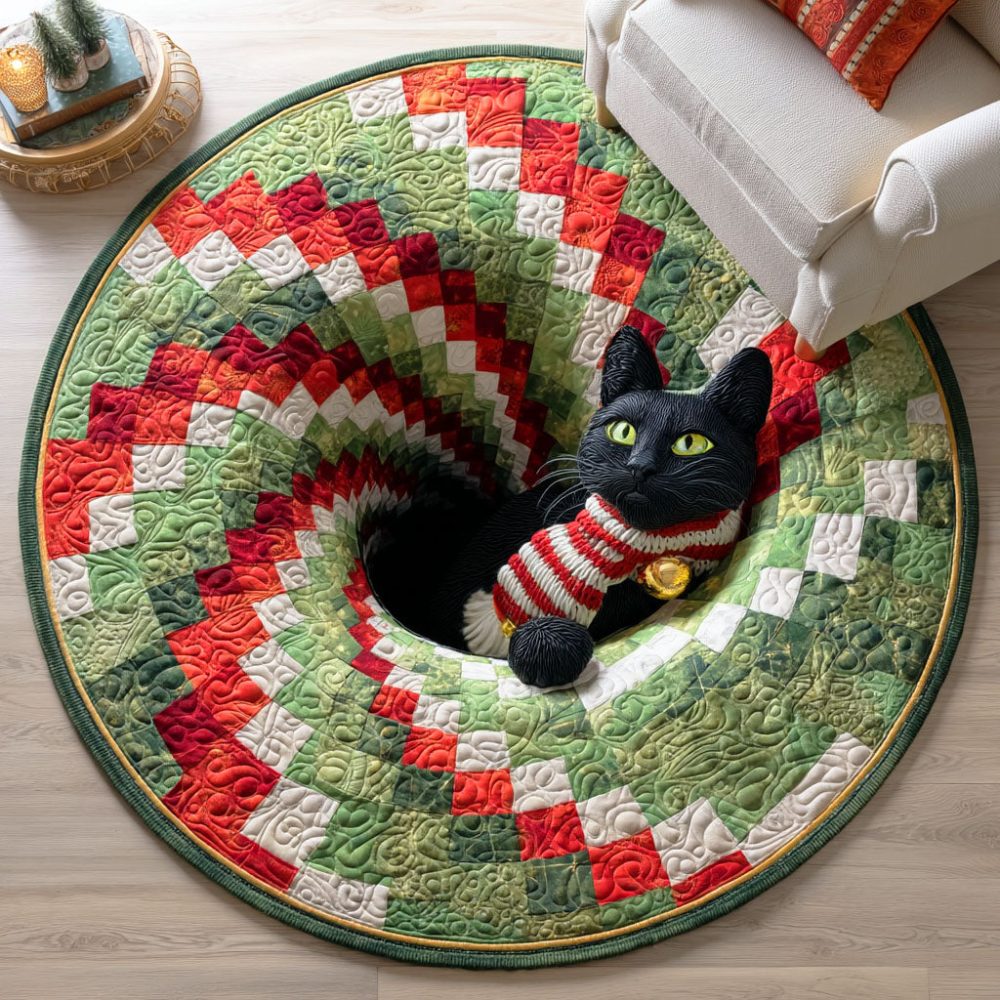 Mistletoe Cat Quilted Round Mat