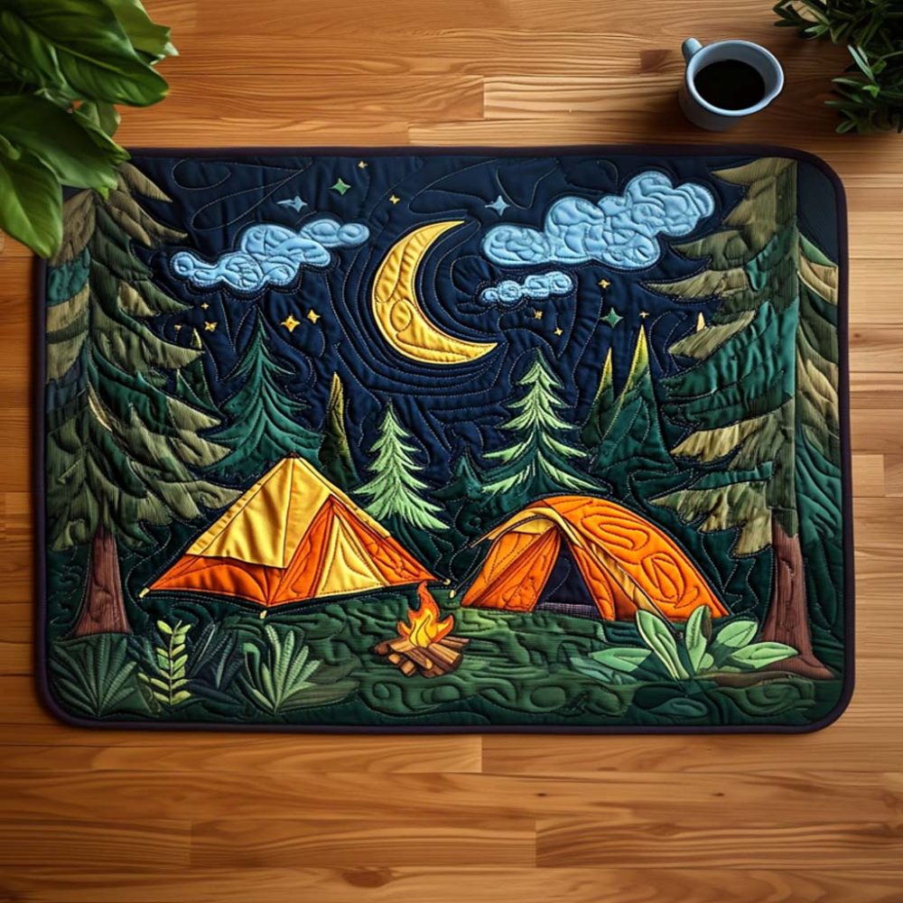 moonlit tents placemat,camping placemat,quilted picnic mat,outdoor table protector,travel placemat,cabin table decor,insulated placemat,machine washable mat