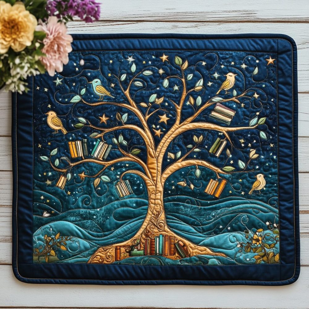 Moonlit Tree Book-Theme Quilted Placemat — Storybook Night Design, Insulated & Easy-Care Table Accent For Cozy Reading Nooks And Dinner Tables