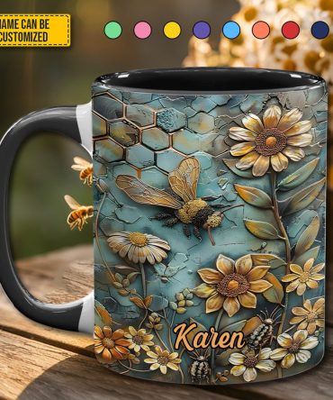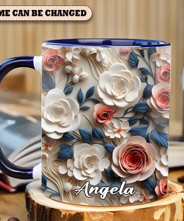 - High quality ceramic mug with two-tone rim, interior, & handle