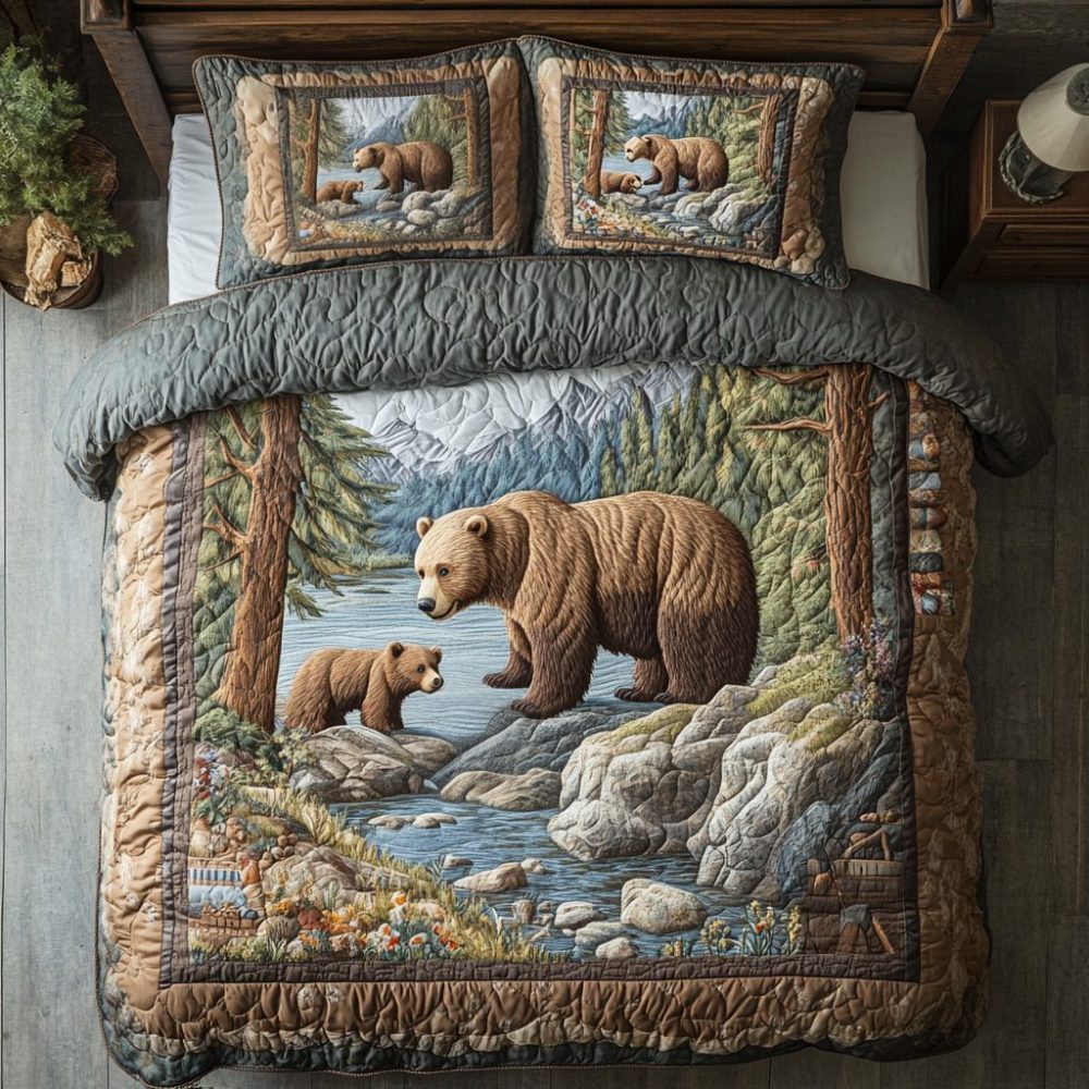 Mountain Grizzly 3-Piece Quilted Bedding Set
