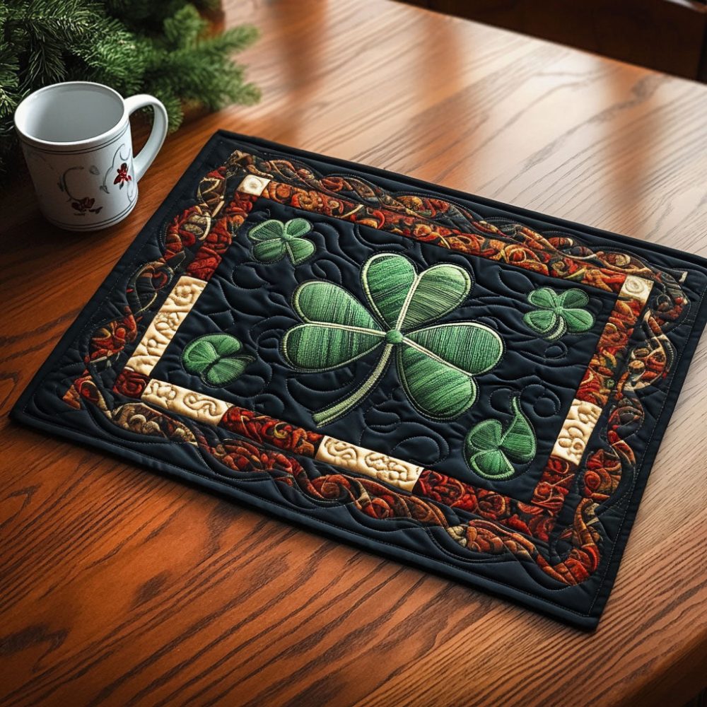 mystic clover placemat,clover placemat,quilted placemat,green table mat,st patricks decor,washable placemat,kitchen table mat