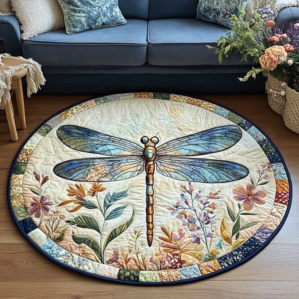 Mystic Garden Dragonfly Quilted Round Mat