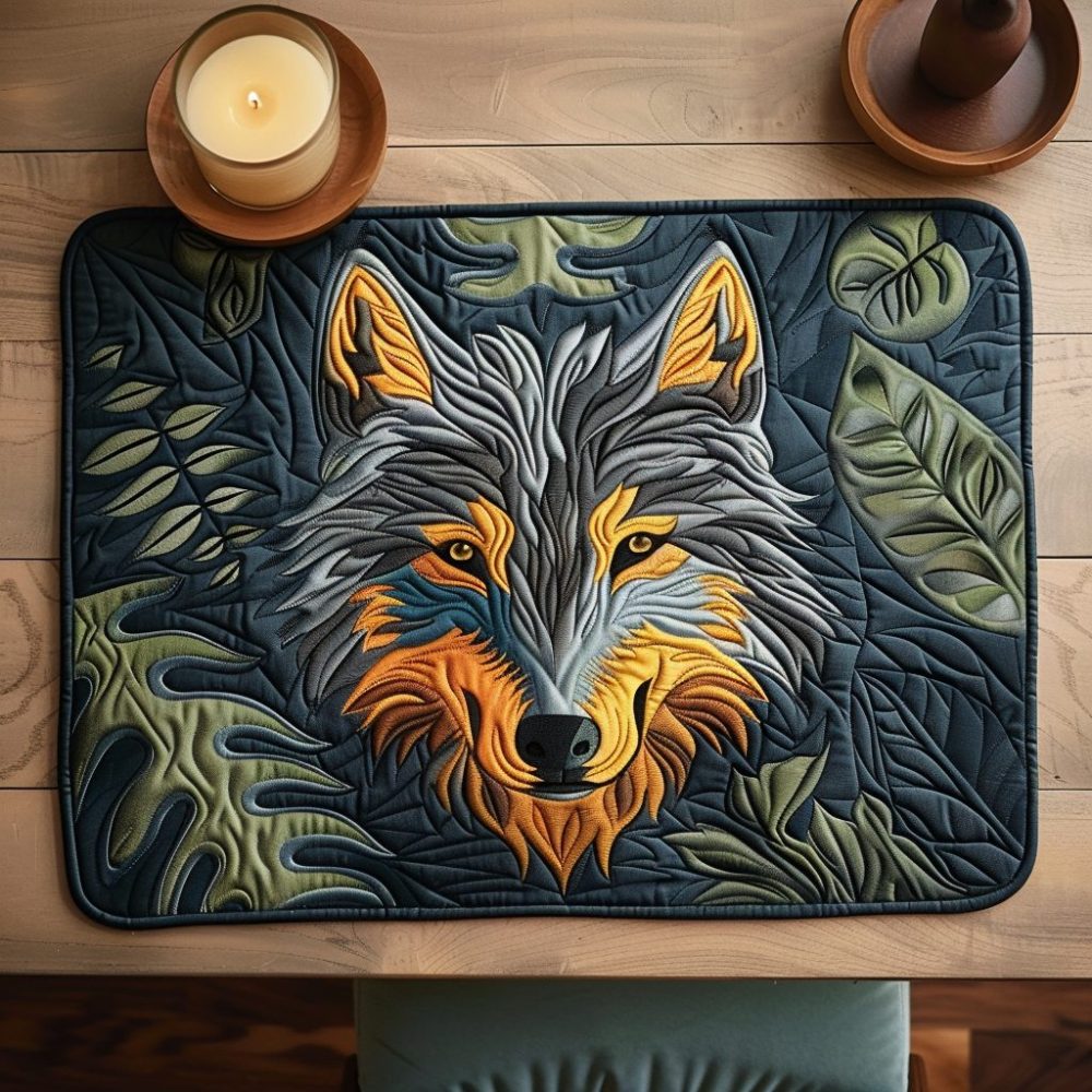 mystic wolf placemat, quilted placemat, 12×18 table mat, cabin decor placemat, cotton-blend, machine washable, wolf gift