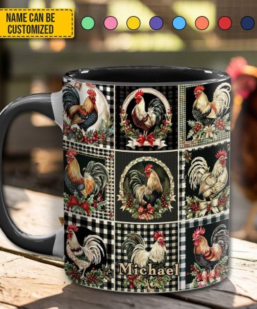 - High quality ceramic mug with two-tone rim, interior, & handle