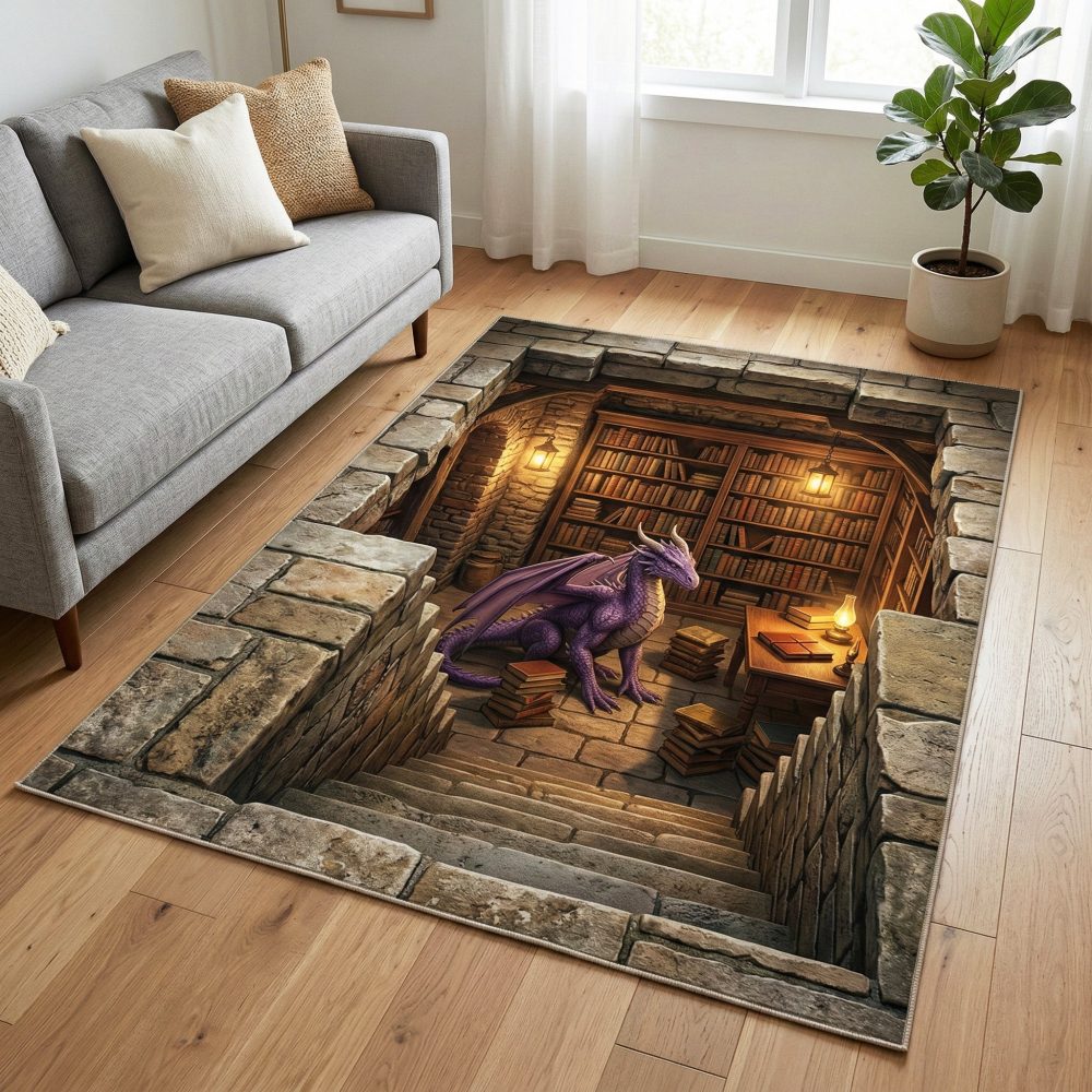 dragon area rug,mythic rug,Asian-inspired rug,statement rug,living room rug,low pile durable rug,accent rug,stain-resistant rug