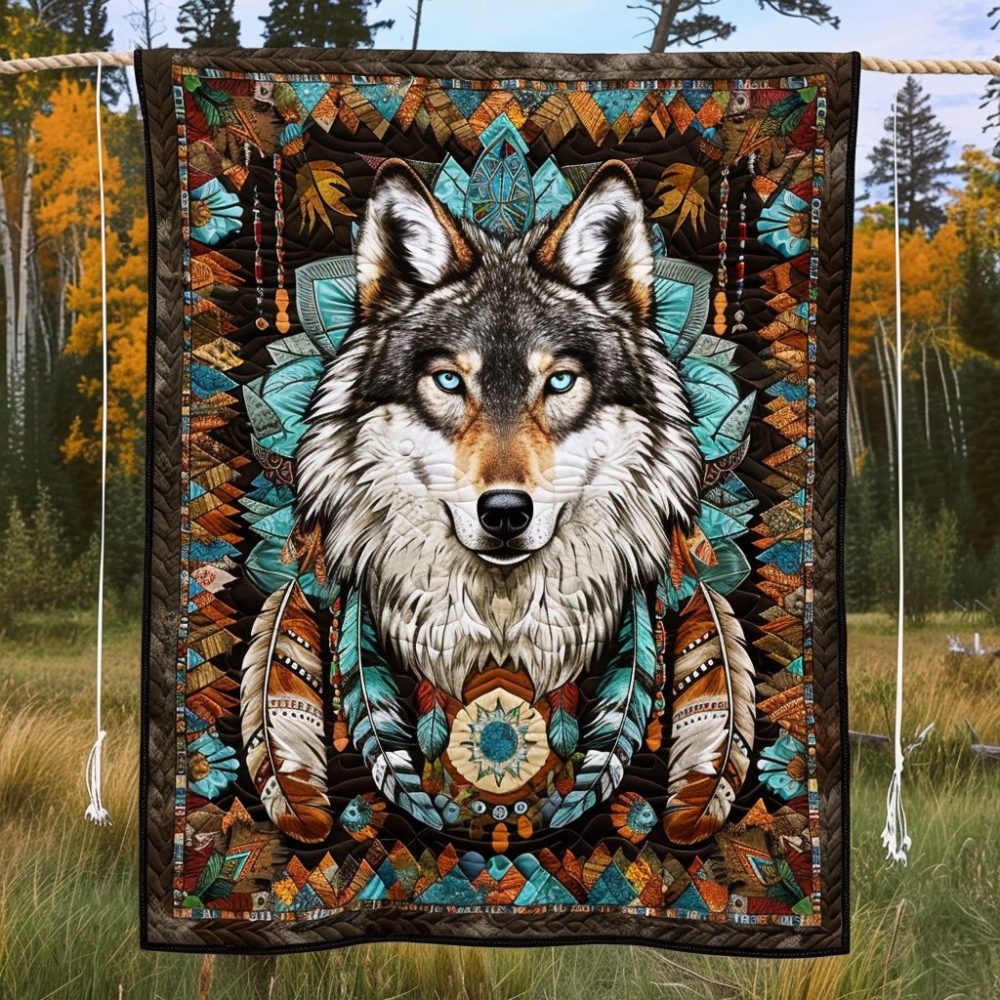 Native Spirit Wolf Quilted Blanket