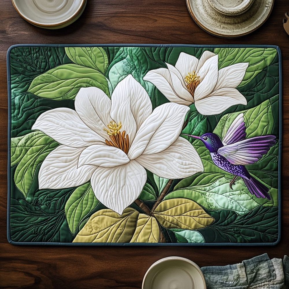 nature harmony placemat, earthy placemat, quilted table mat, eco-chic table decor, washable placemat, rustic dining accessories, floral placemat
