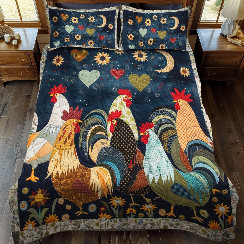 Night Roosters 3-Piece Quilted Bedding Set