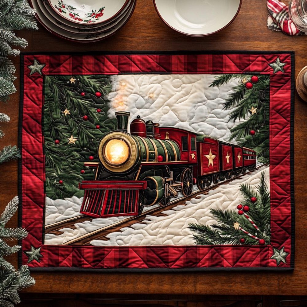 quilted placemat, North Pole placemat, holiday table mat, Christmas quilted placemat, machine washable placemat, cotton blend placemat, festive table decor