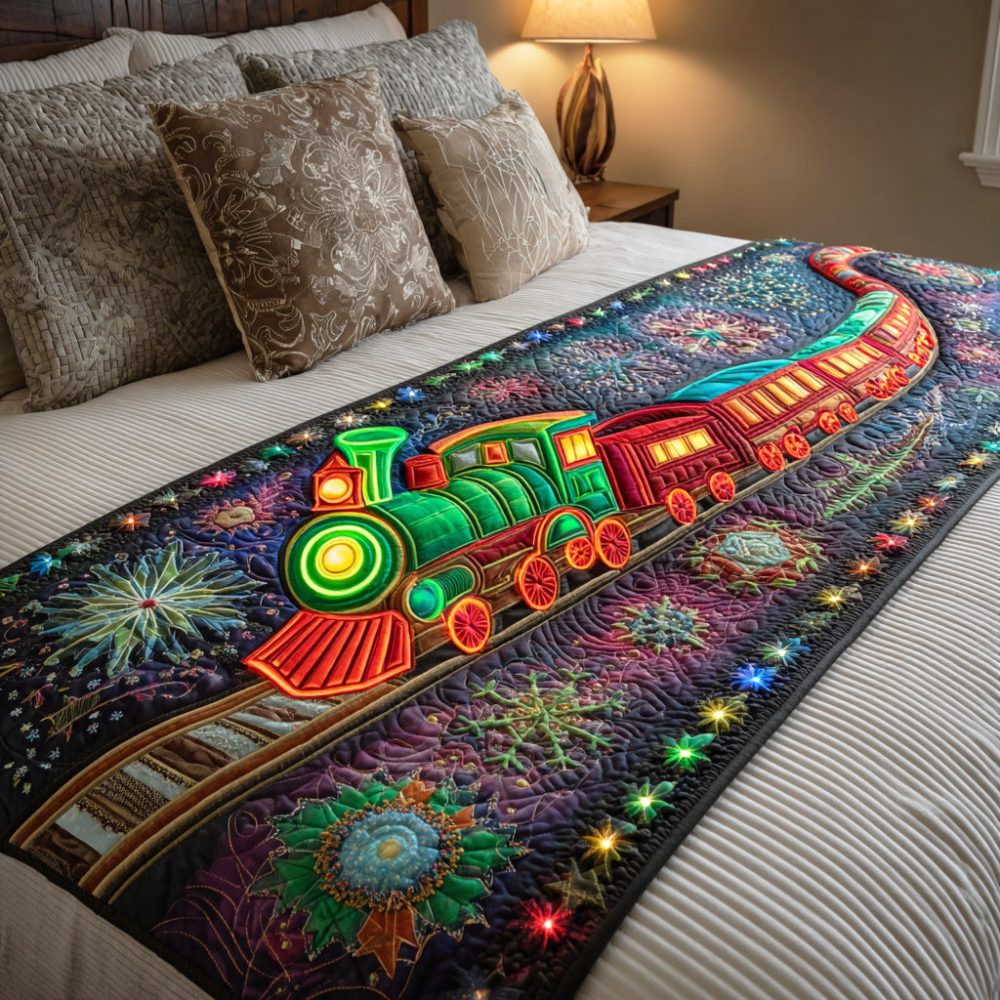 Northlight Rail, winter bed runner, quilted bed scarf, seasonal bedding, rail motif throw, decorative bed runner, cozy accent, holiday decor