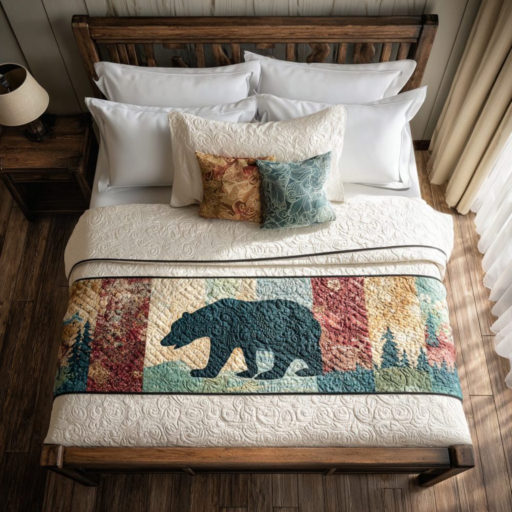 Northwood Nights Quilted Bed Scarf — Dark Forest Quilted Bed Runner For Cozy Cabin Ambiance, Durable Cotton & Reversible Design