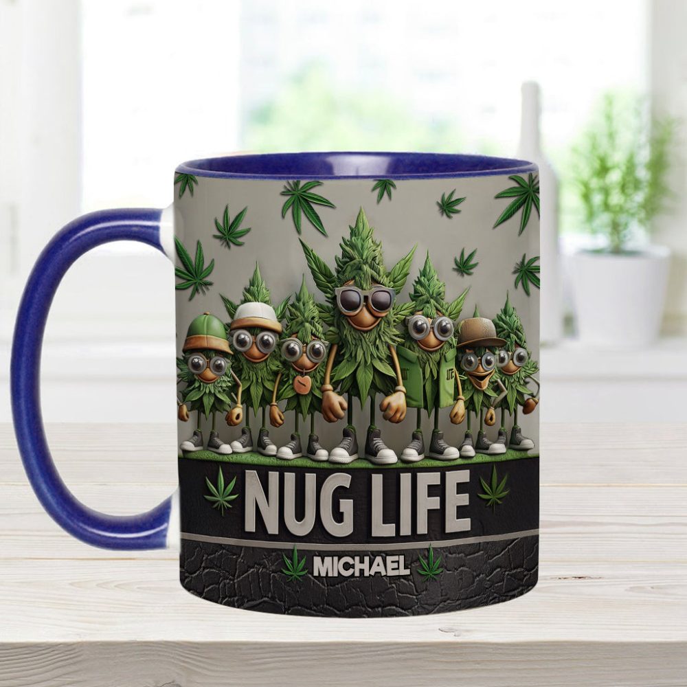 - High quality ceramic mug with two-tone rim, interior, & handle