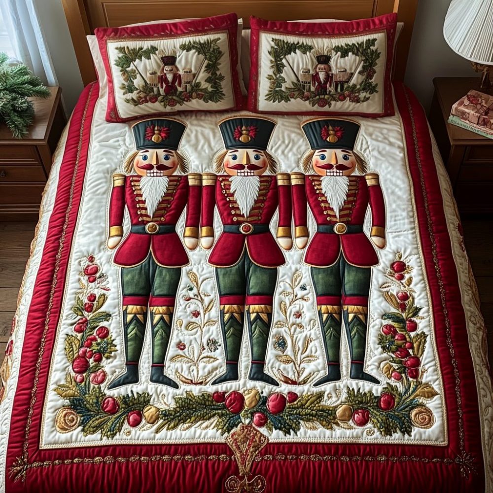 Nutcracker Holiday Spirit 3-Piece Quilted Bedding Set