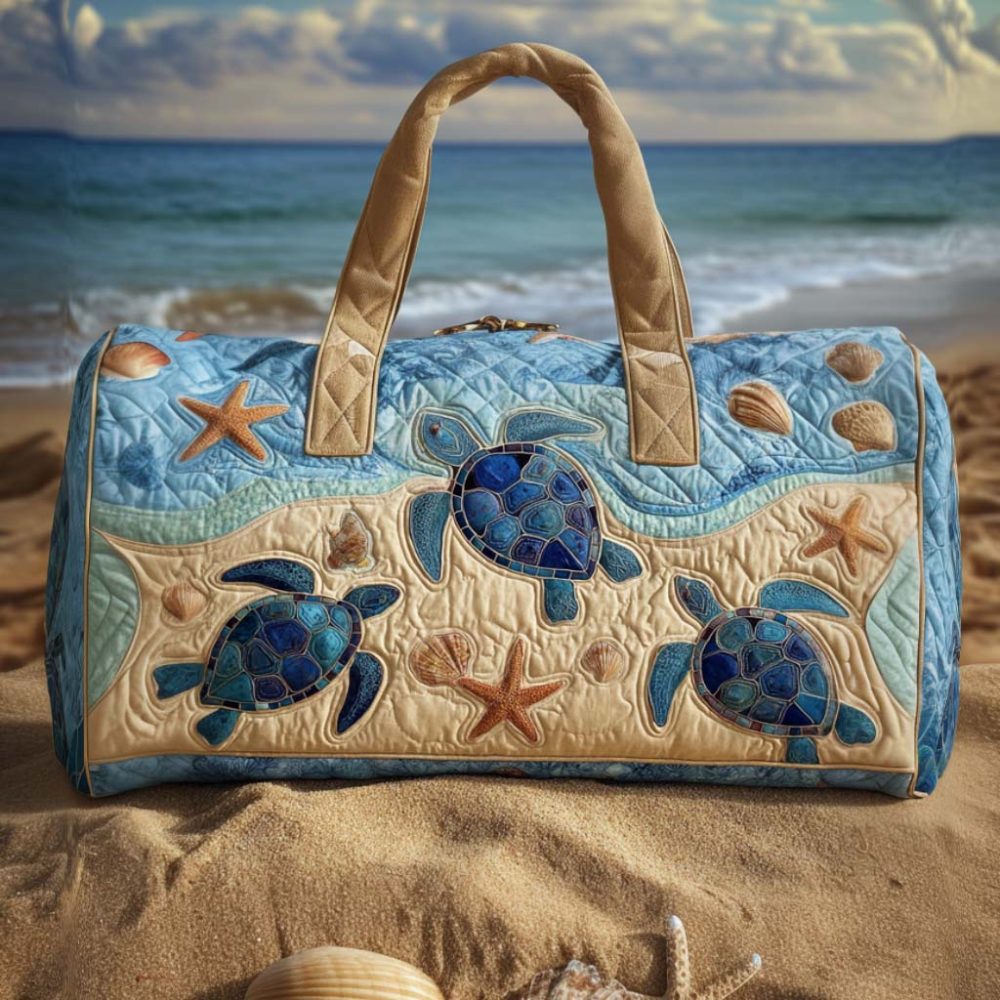 ocean turtles duffle, sea turtle travel bag, quilted weekender, beach duffel, nautical travel bag, turtle print bag, marine life luggage, coastal weekender, tropical travel bag, gym duffel, overnight bag, carry-on weekend bag, cruise bag, beach vacation bag, nature lover gift, eco travel accessory