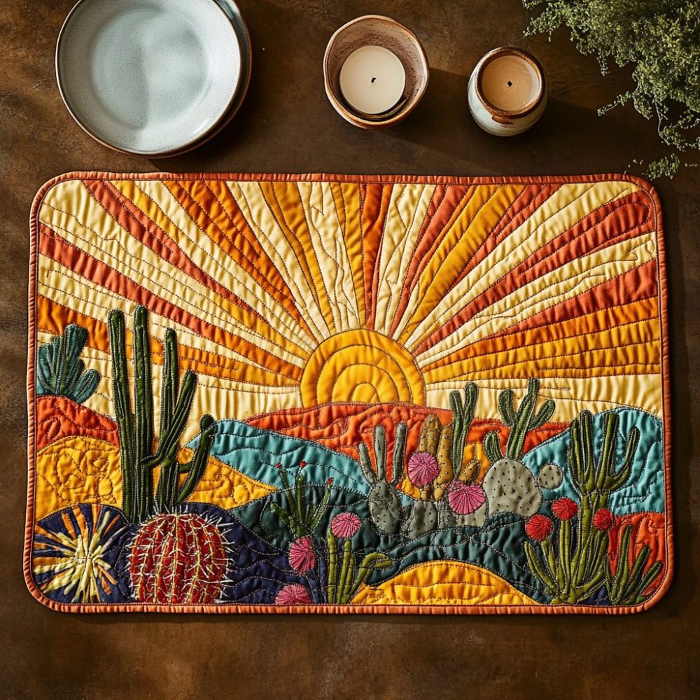 Painted Dunes Quilted Placemat — Coastal Sand & Sunset Hues, Soft Cotton Blend Table Mat, Machine-Washable, Beach-Inspired Dining Decor