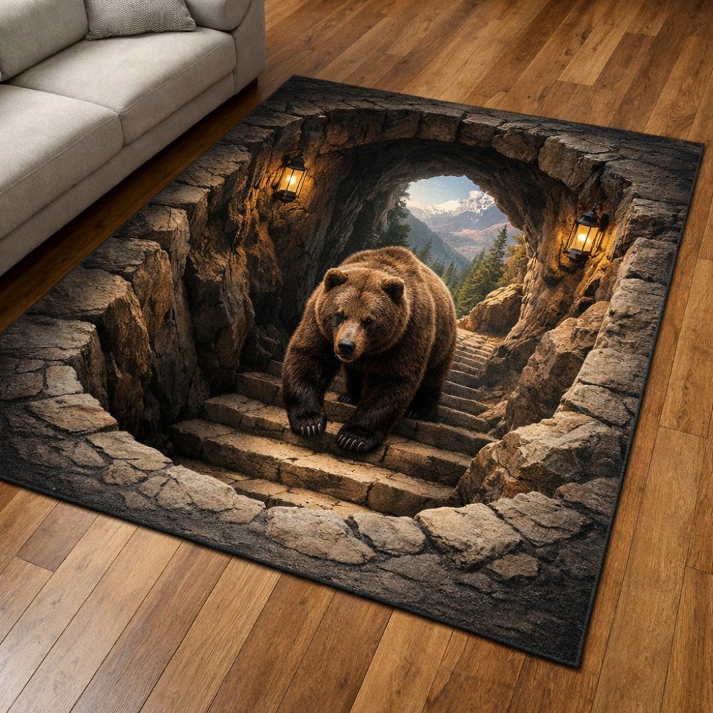Passage Bear Area Rug – Modern Rustic Accent Rug For High-Traffic Rooms, Non-Slip Backing Option, Multiple Sizes