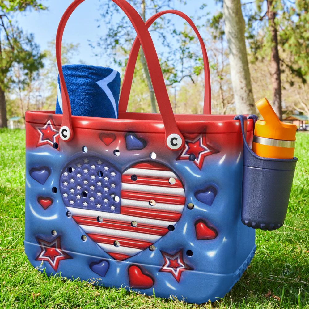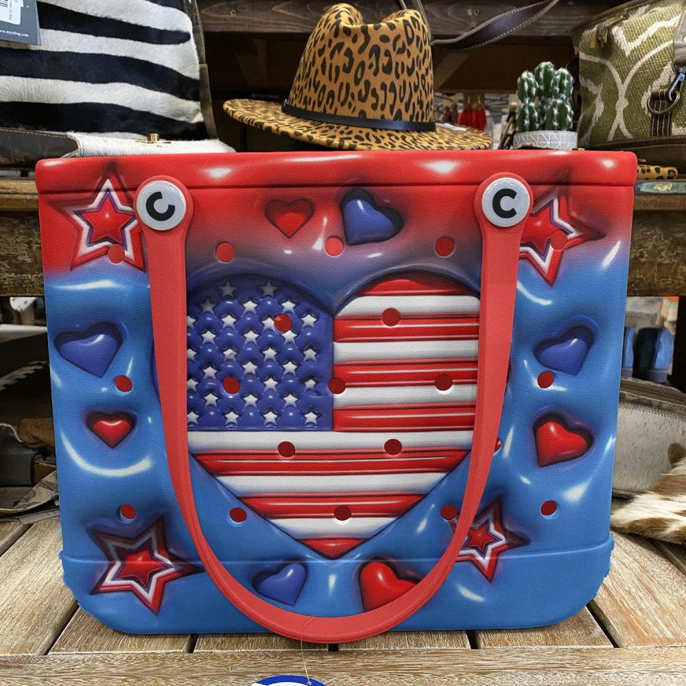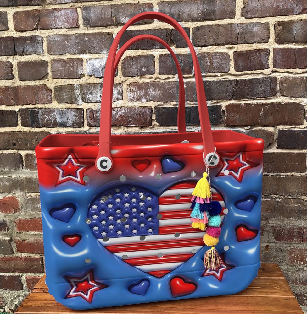 Be the first to review “Patriotic American Flag Tote Bag – Stylish Red, White & Blue Heart Design For Summer Beach & Shopping”