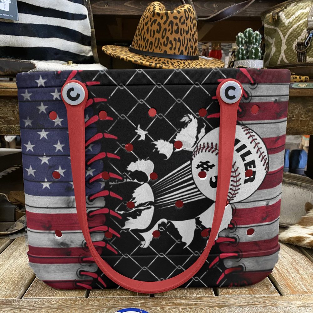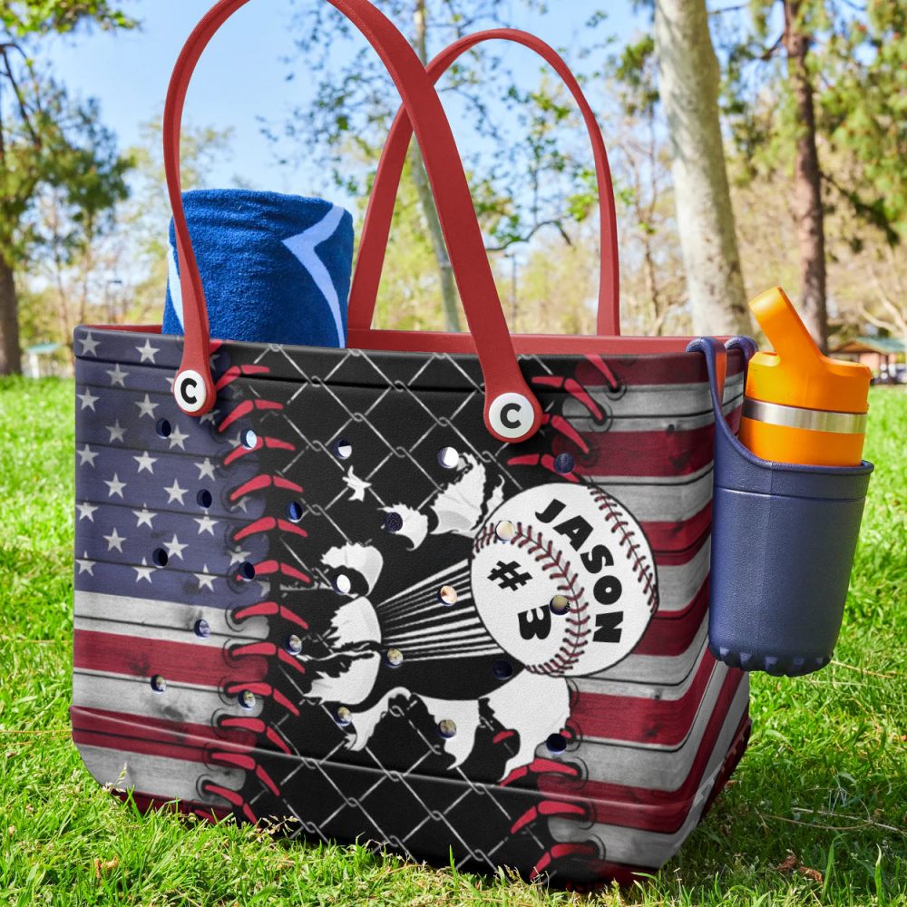 Be the first to review “Patriotic Baseball Tote Bag – American Flag Design, Personalized Sports Gift”