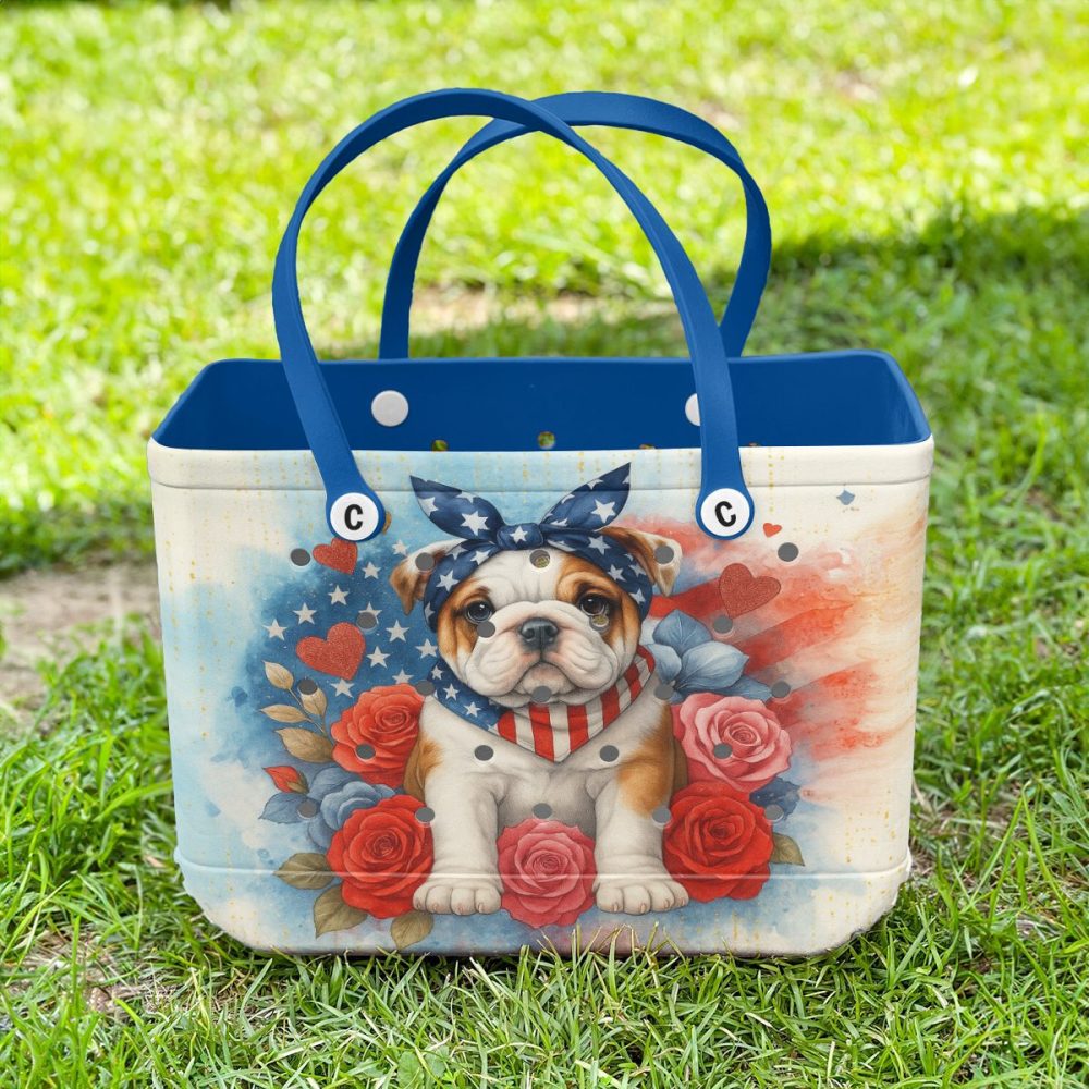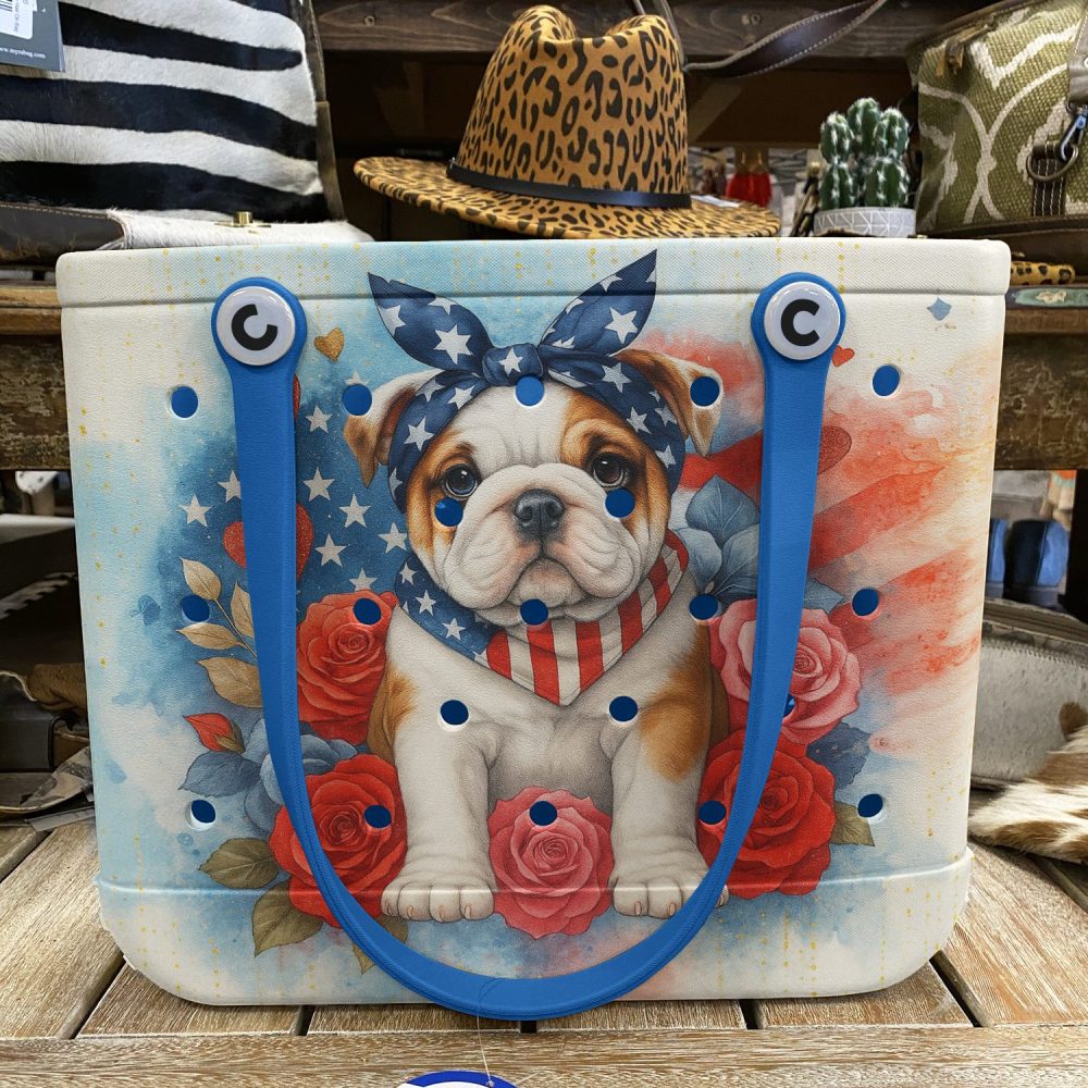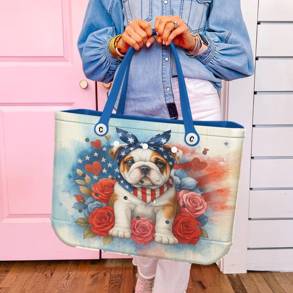 Be the first to review “Patriotic Bulldog Tote Bag – Stylish & Spacious Handbag With Floral Design”