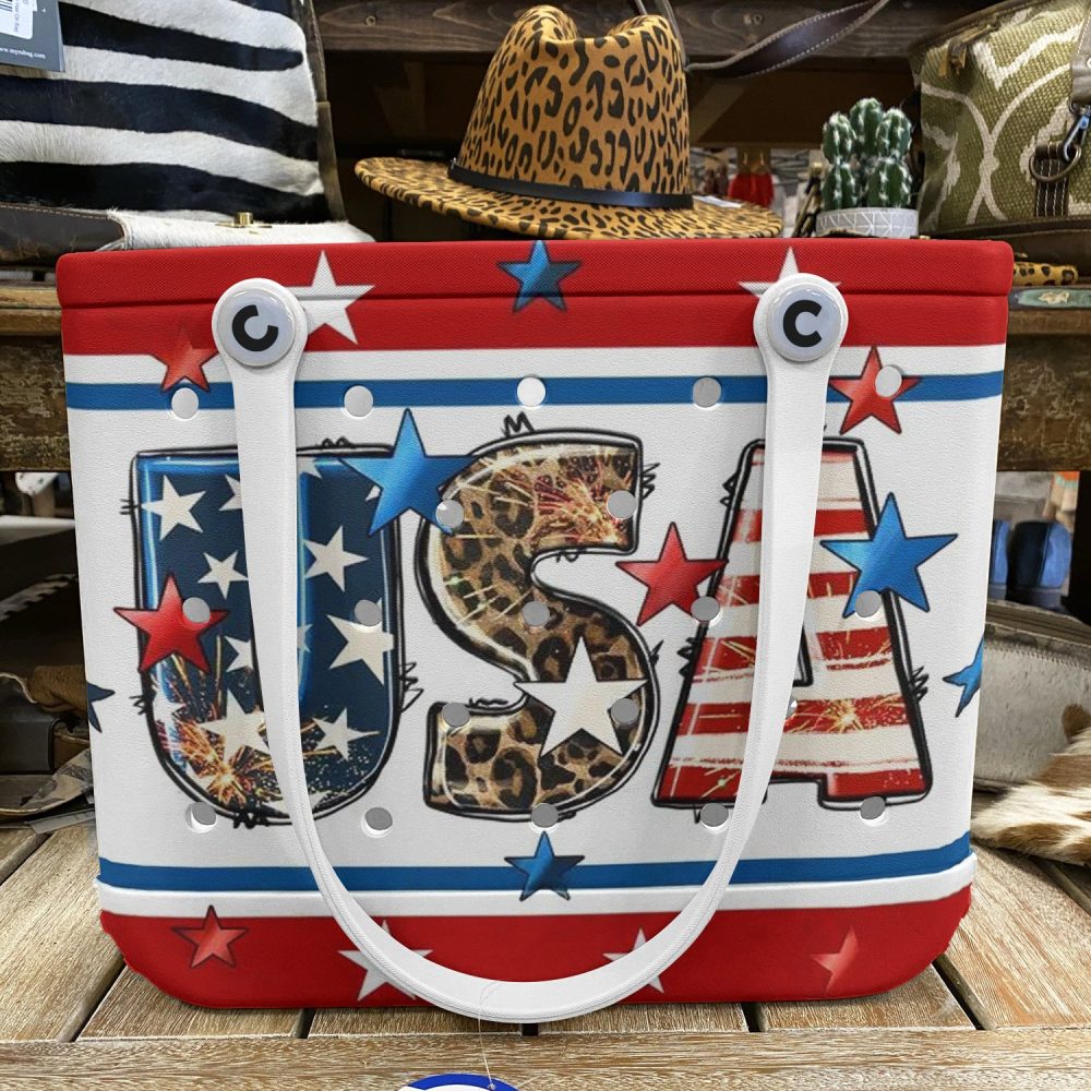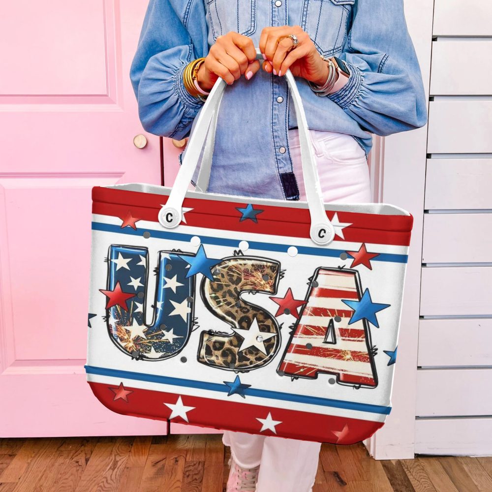 Be the first to review “Patriotic Usa Tote Bag – Stylish Red, White & Blue Design With Stars – Perfect For Summer Outings”