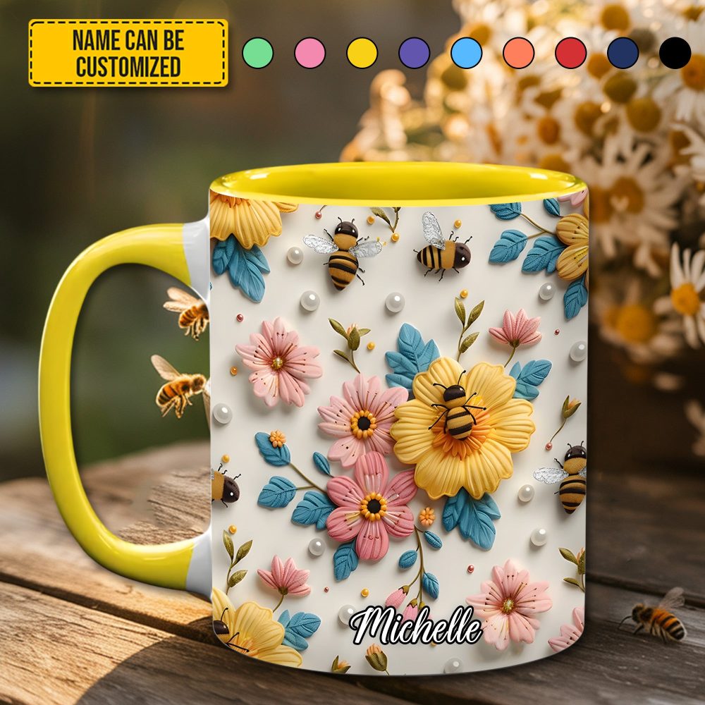 - High quality ceramic mug with two-tone rim, interior, & handle