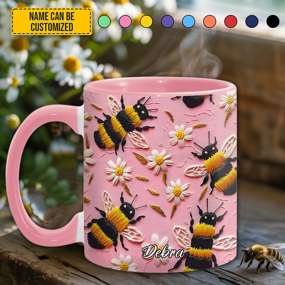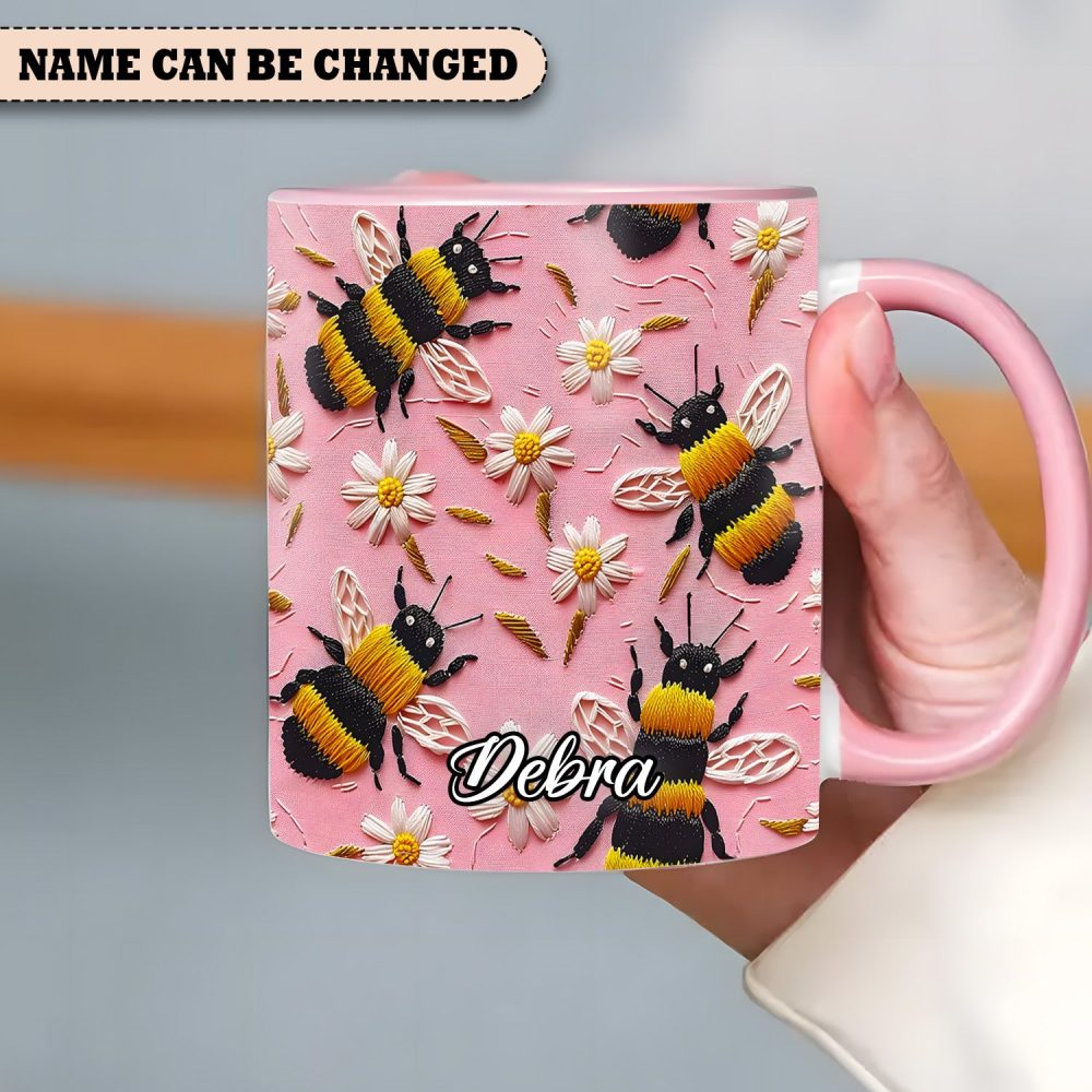 Personalized Bee & Daisy Accent Mug – Embroidered Style