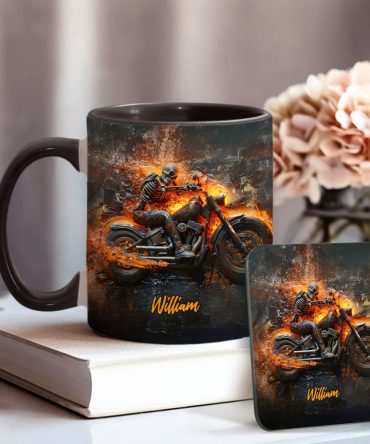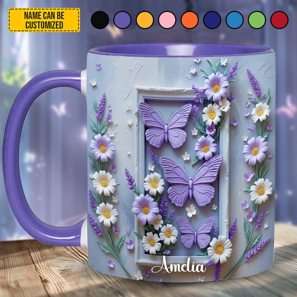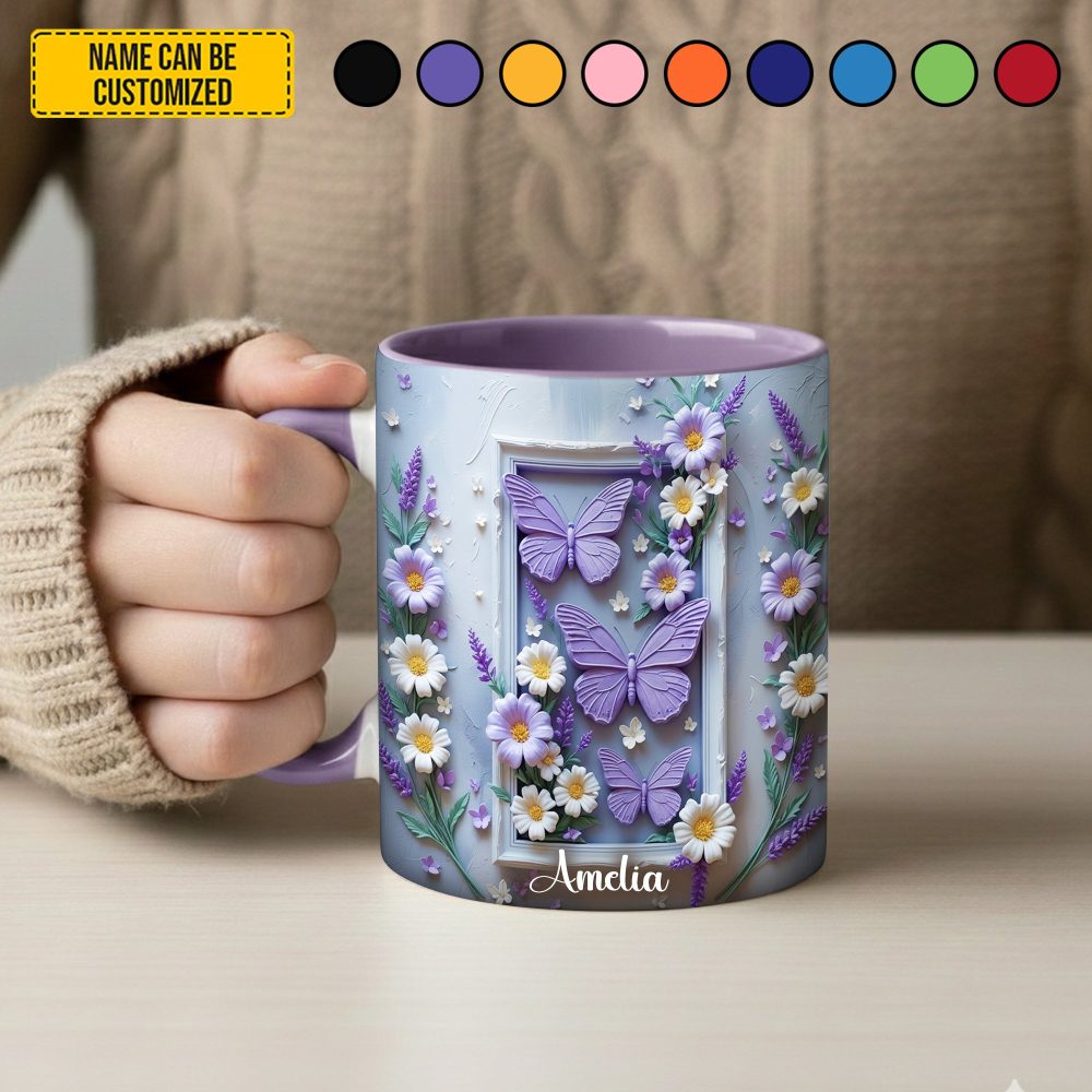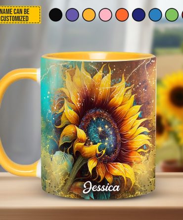 - High quality ceramic mug with two-tone rim, interior, & handle