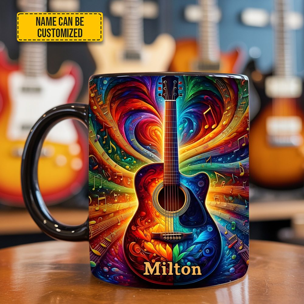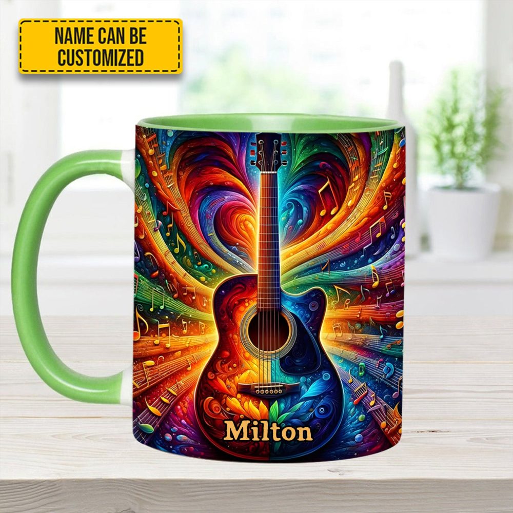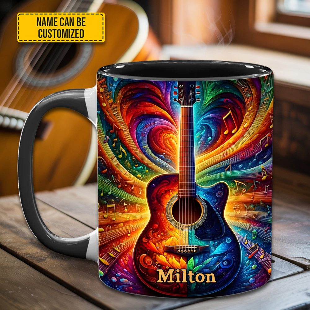 - High quality ceramic mug with two-tone rim, interior, & handle