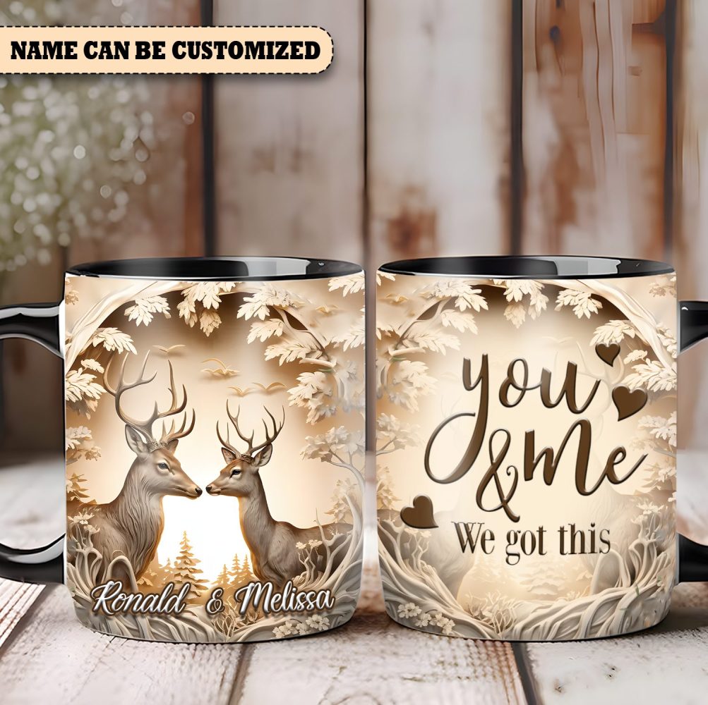 - High quality ceramic mug with two-tone rim, interior, & handle