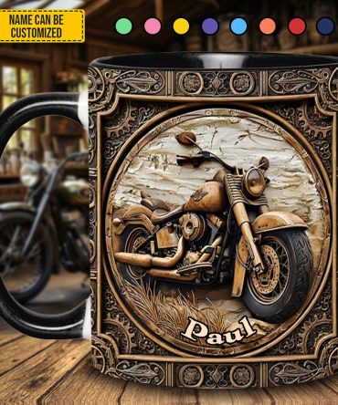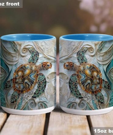 - High quality ceramic mug with two-tone rim, interior, & handle