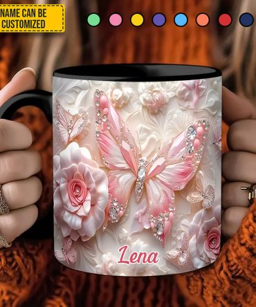 - High quality ceramic mug with two-tone rim, interior, & handle