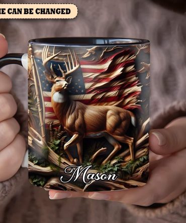 - High quality ceramic mug with two-tone rim, interior, & handle