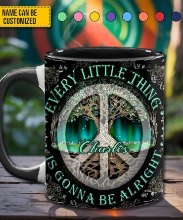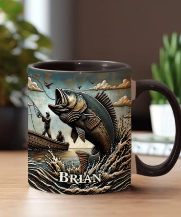- High quality ceramic mug with two-tone rim, interior, & handle