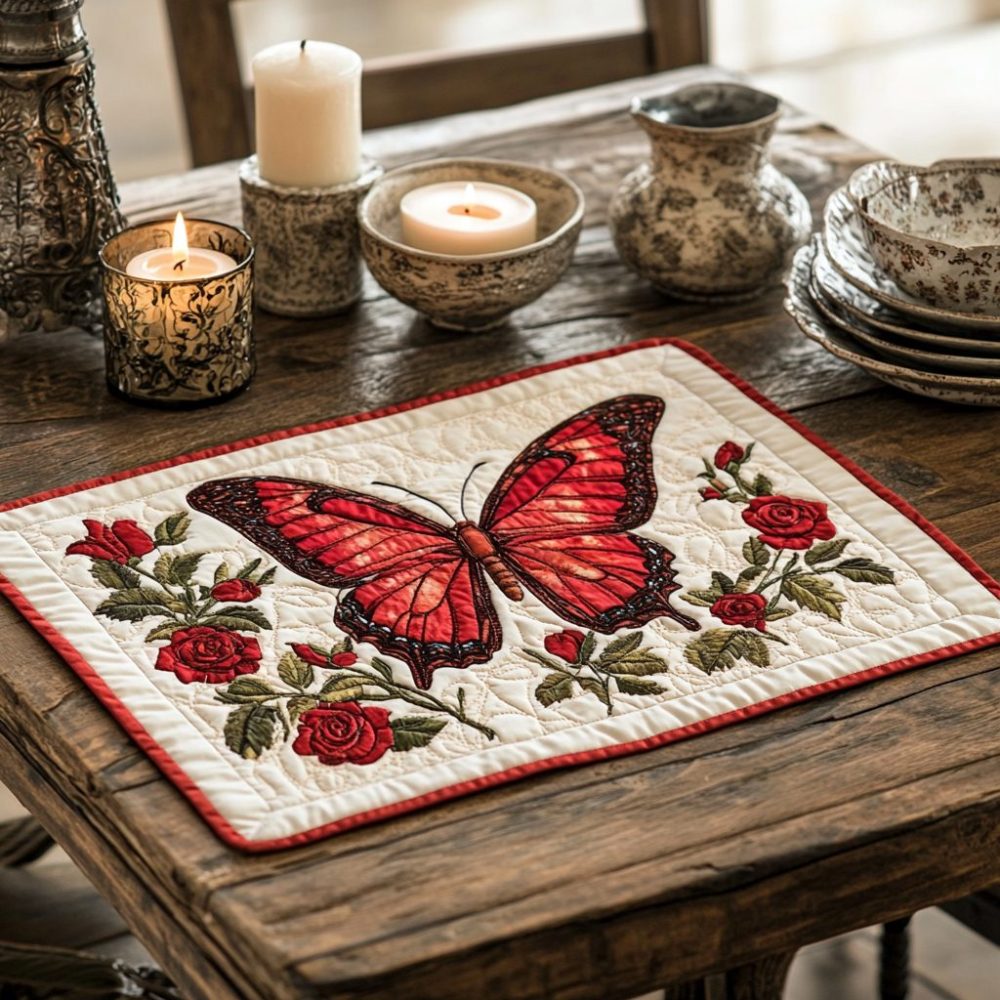 floral quilted placemat, Petal Flight placemat, machine washable placemat, decorative table mat, heat resistant placemat, dining table decor, quilted table protector