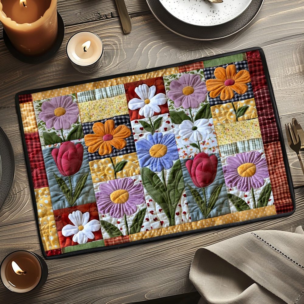 floral quilted placemat,petal placemat,cotton placemat,heat-protective placemat,floral table decor,machine washable placemat