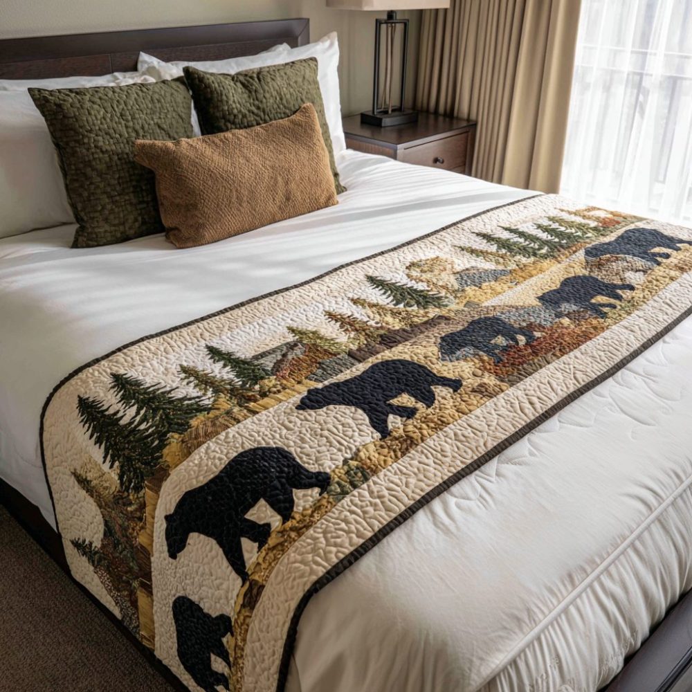 Pine Ridge Quilted Bed Scarf — Classic Pine & Ridge Motif Cotton Bed Runner For Lodge-Style Bedrooms, Reversible & Easy-Care