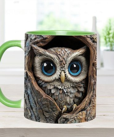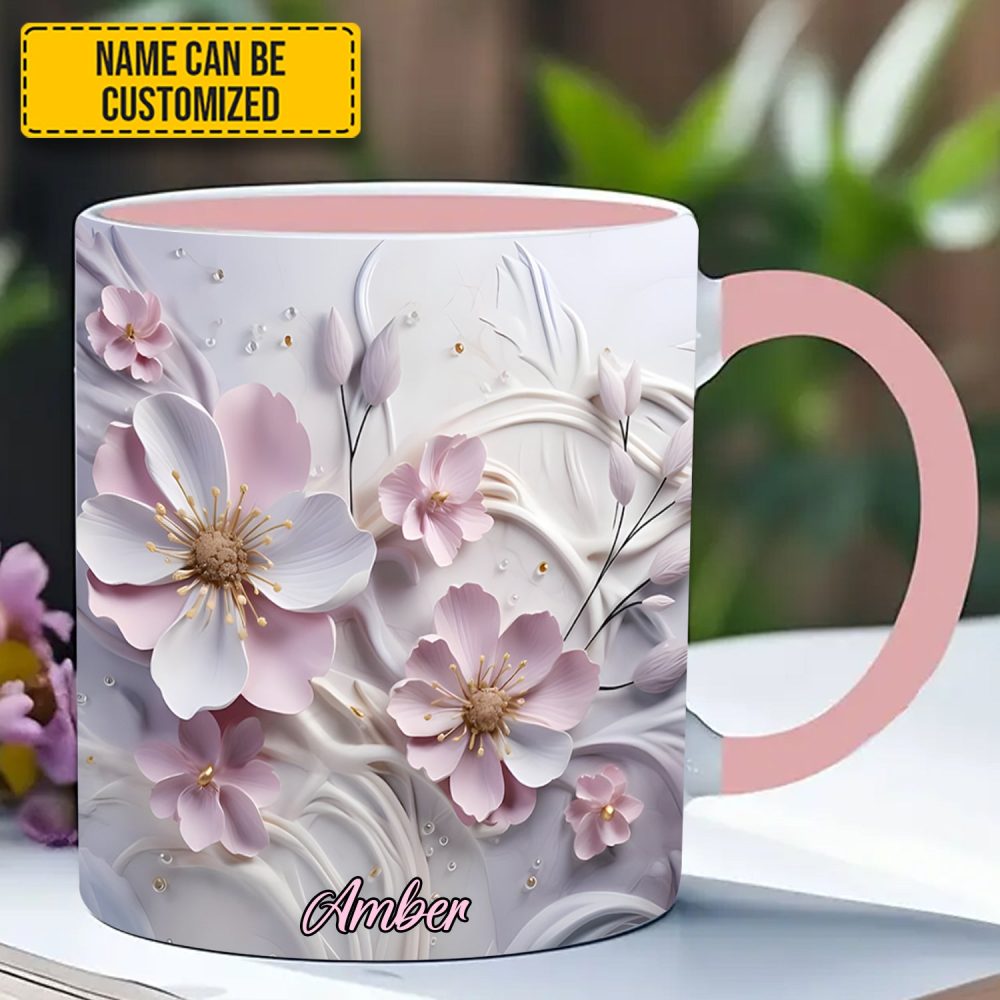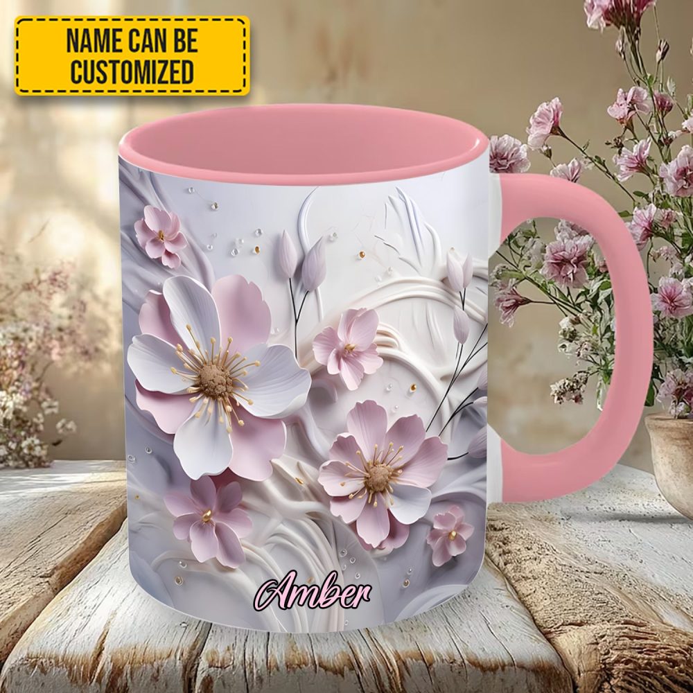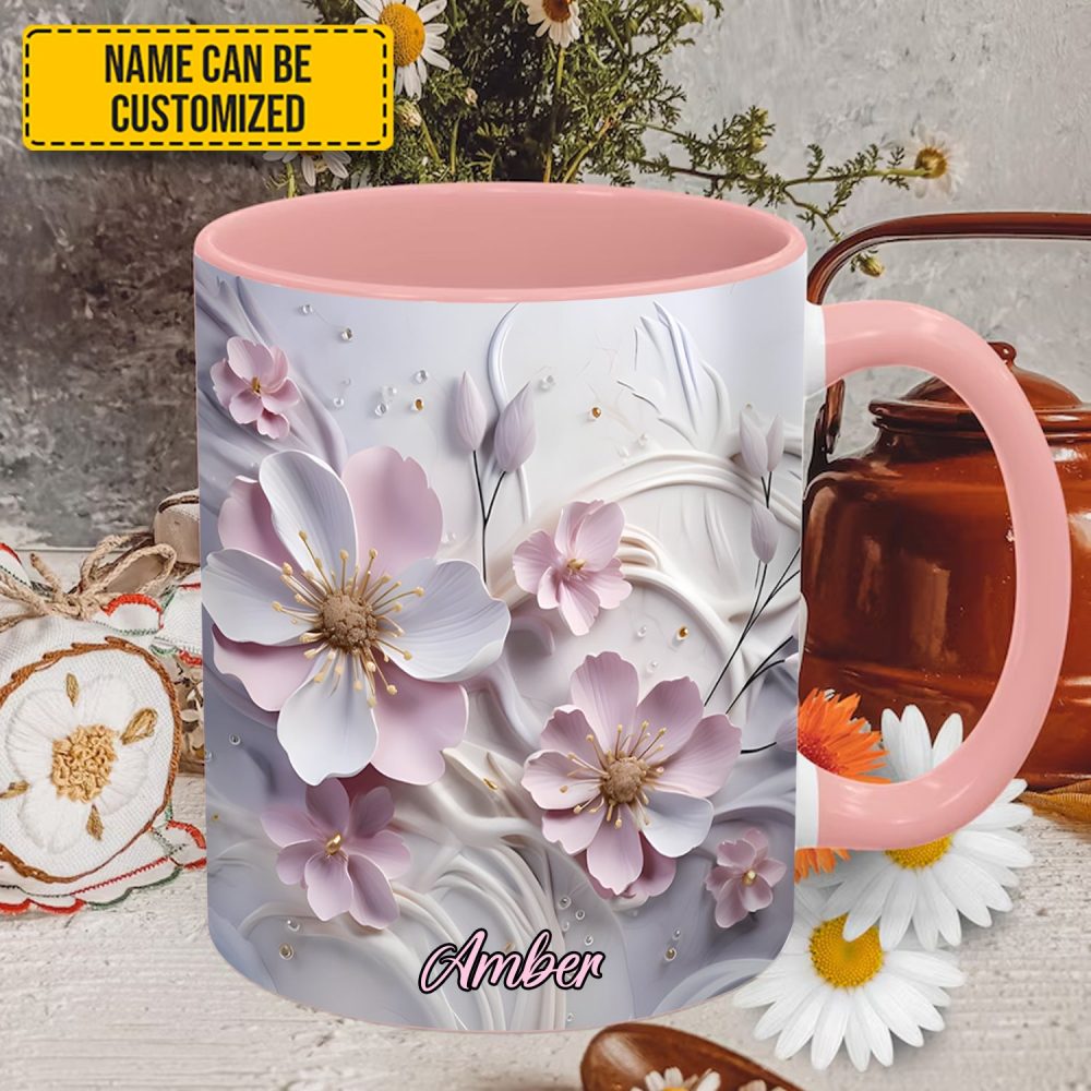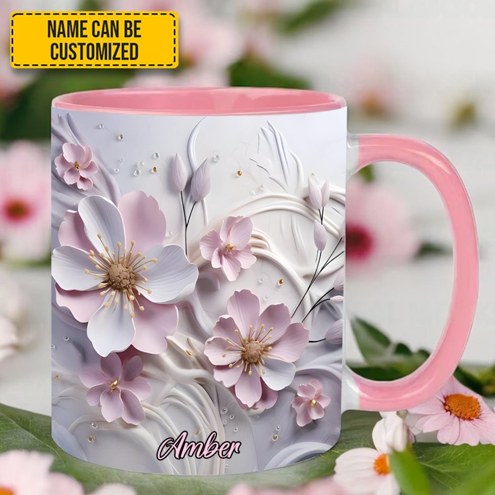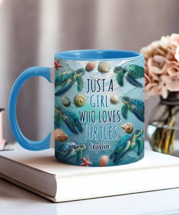 - High quality ceramic mug with two-tone rim, interior, & handle