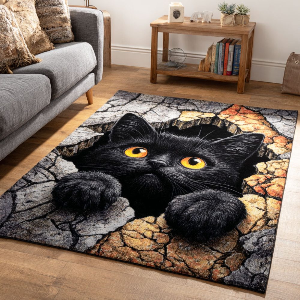 cat print rug,photo rug,novelty area rug,animal print rug,children’s room rug,anti-slip rug,unique accent rug,plush cat mat