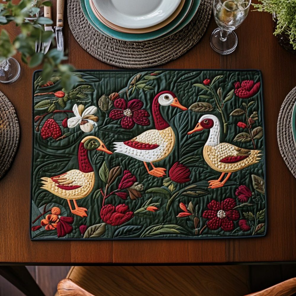 playful duck placemat,quilted placemat,bright table mats,padded cotton placemat,machine washable placemats,slip resistant placemat,fun table decor